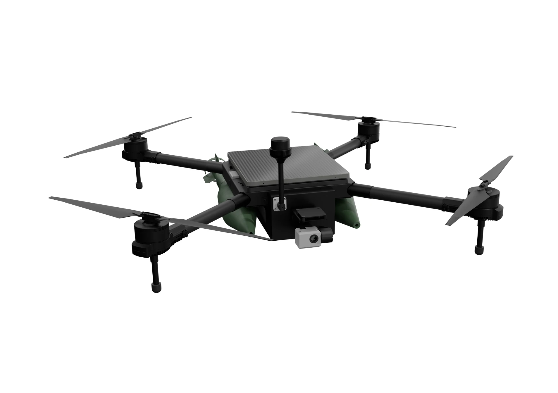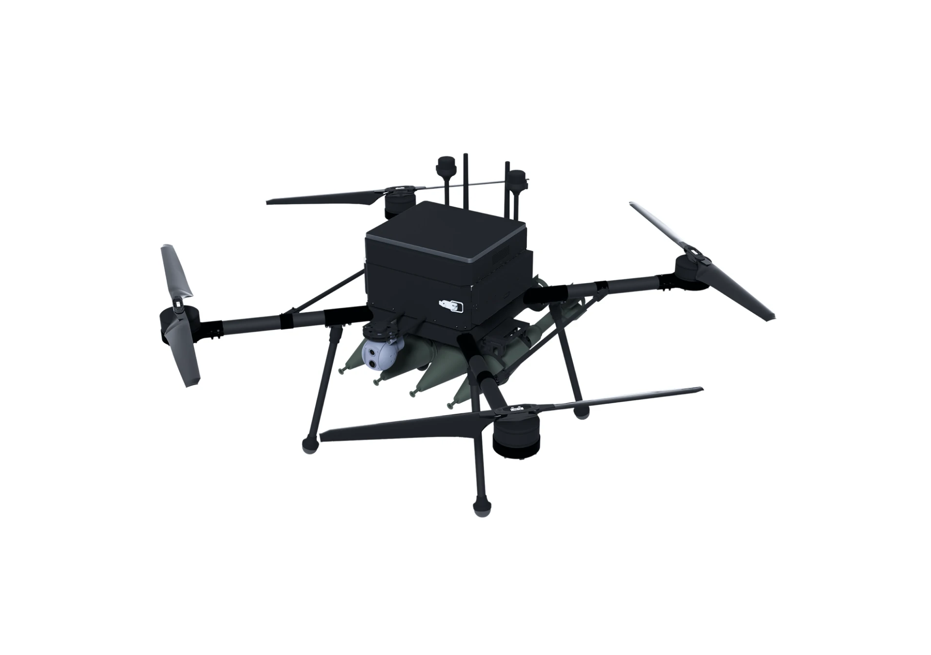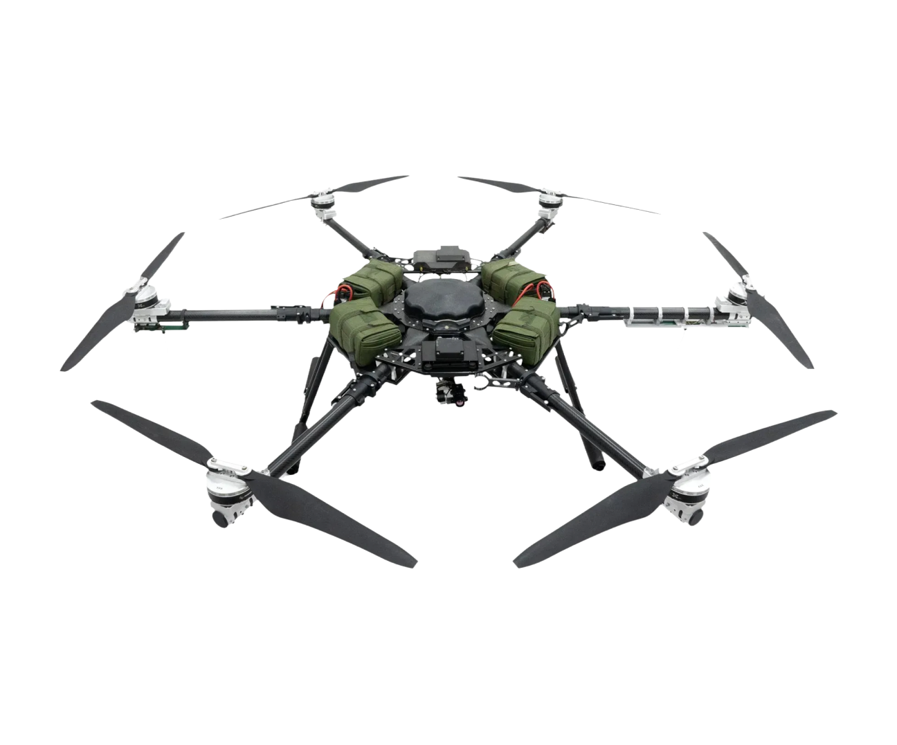 The R18 is a drone designed for both military and civilian use. This octocopter can be employed for surveillance and reconnaissance, cargo delivery, or strike missions.